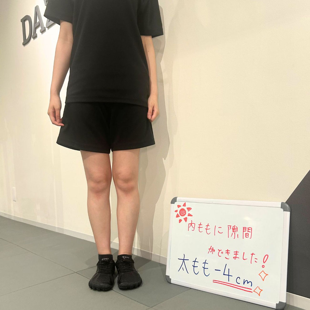 元プロのスポーツ選手がやっているダイエットジムという事でDAZZLEに入会しました。 自宅から少し遠いので頻繁には通えていないのですが、特に気になっていた太ももが明らかにすっきりして、久しぶりに内ももに隙間ができてすごく嬉しいです!